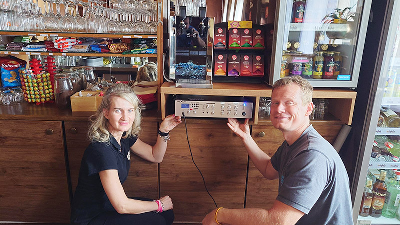 Zakoupili jsme váš zvukový systém, protože jsme na našem hotelu potřebovali oddělit tři zvukové zóny – toalety, sál č. 1 a sál č. 2. Na vašich webových stránkách jsme našli zařízení, které umožňuje nezávislé ovládání hlasitosti v jednotlivých zónách, což přesně odpovídalo našim potřebám.